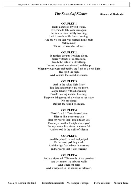 PROJET MUSICAL --> SIMON AND GARFUNKEL - The Sound of Silence (1964)